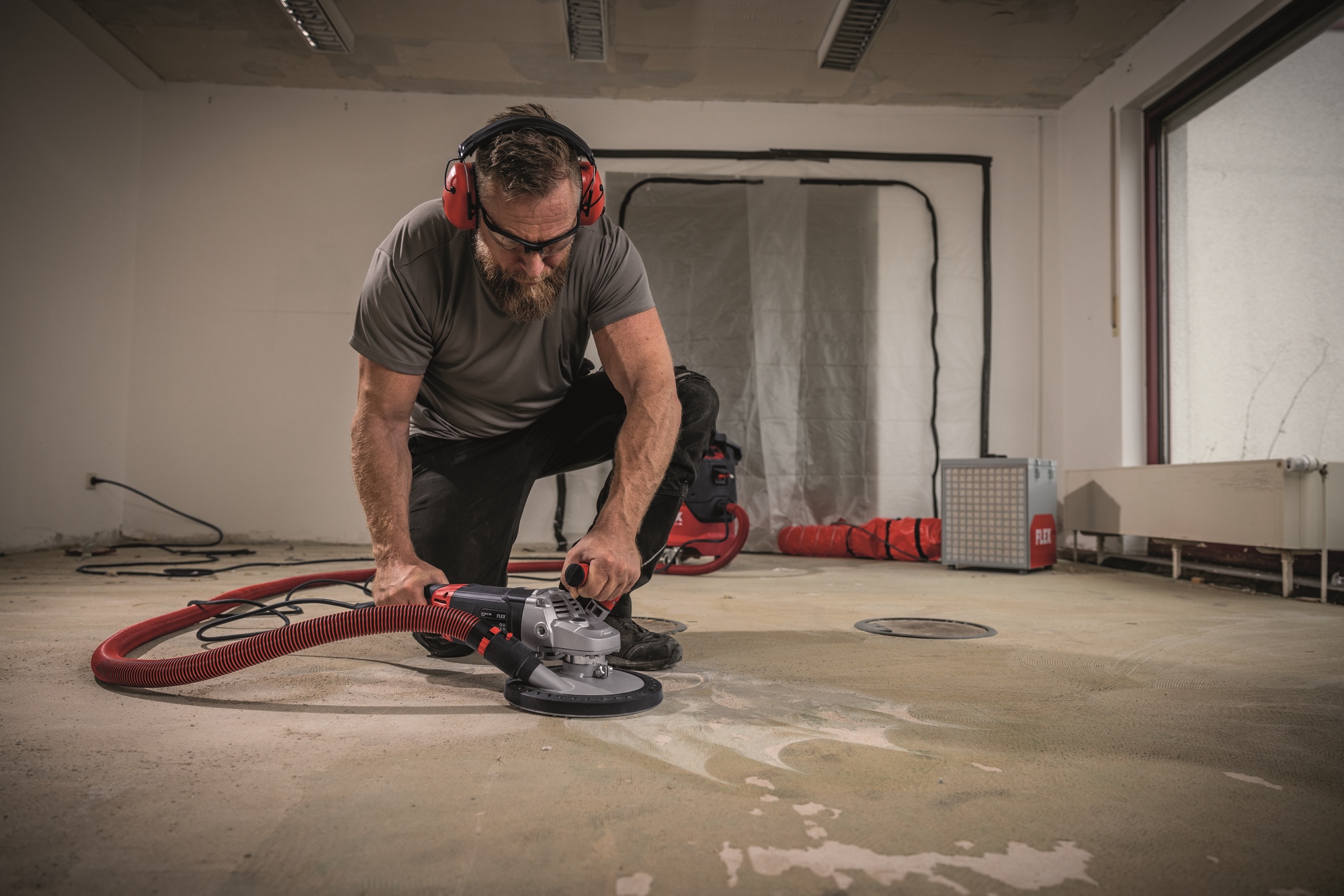 Staubabsaugung: schützt vor abrasivem Staub, senkt den Scheibenverschleiß, hält die Betonporen für die Neubeschichtung offen