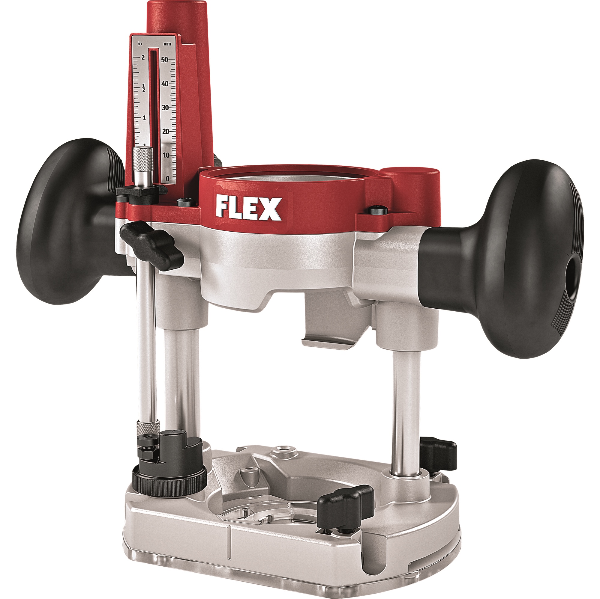 Für den Umbau zur Oberfräse, mit gummierten Griffen und Klemmfunktion für eine sichere Führung, inkl. Grundplatte. Der Fräskorb verfügt über eine Nullfunktion der Skala, Frästiefeneinstellung über Revolveranschlag sowie stufenlose Frästiefen-Feineinstellung über Drehring.