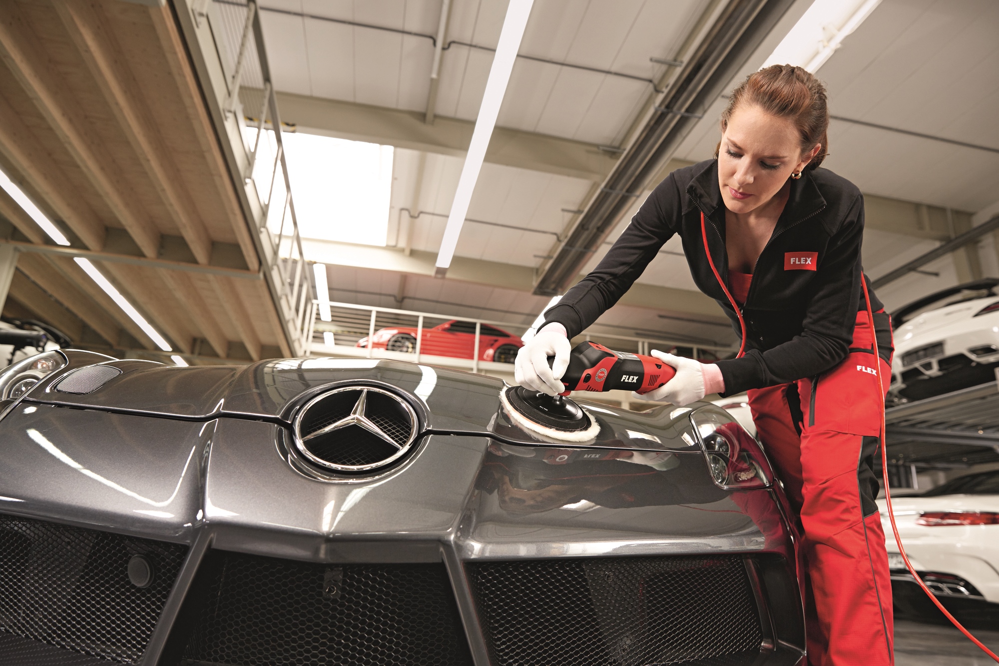 Griffhaube: ergonomisch geformt mit Softgrip. Die Maschine kann präzise geführt werden und liegt immer angenehm und sicher in der Hand