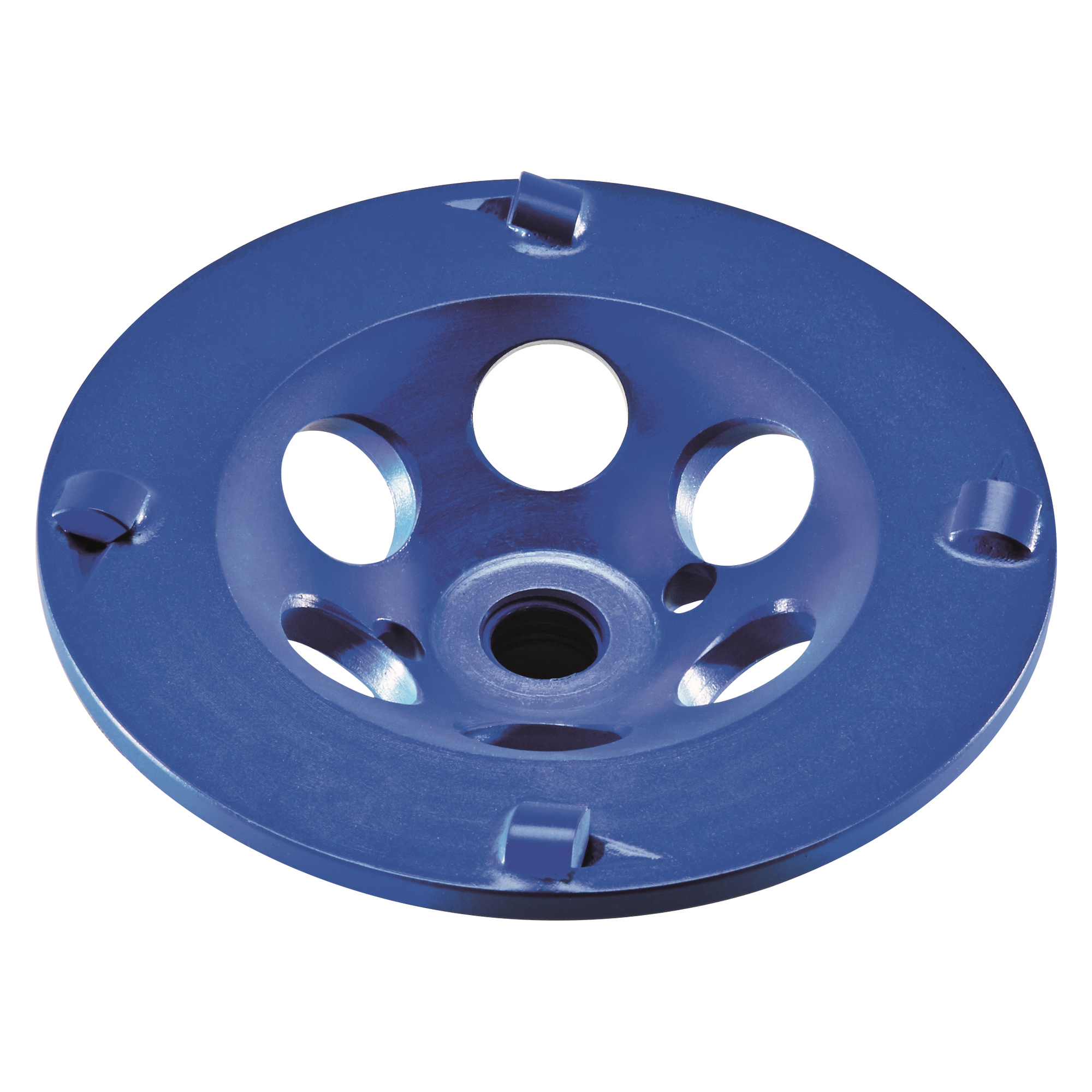 Schleifteller bestückt mit polykristallinen Diamant-Segmenten. Zum Abtragen von thermisch empfindlichen Belägen wie Klebstoffe, Dichtstoffe, plastische Anstriche, Bitumenbeschichtungen auf mineralischen Untergründen. Durch die PKD-Segmente werden Beläge schnell und effektiv abgetragen ohne dabei zu verkleben.