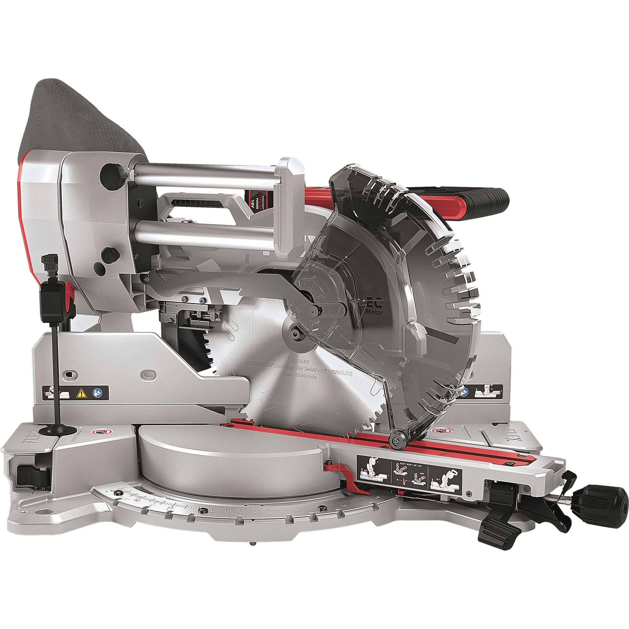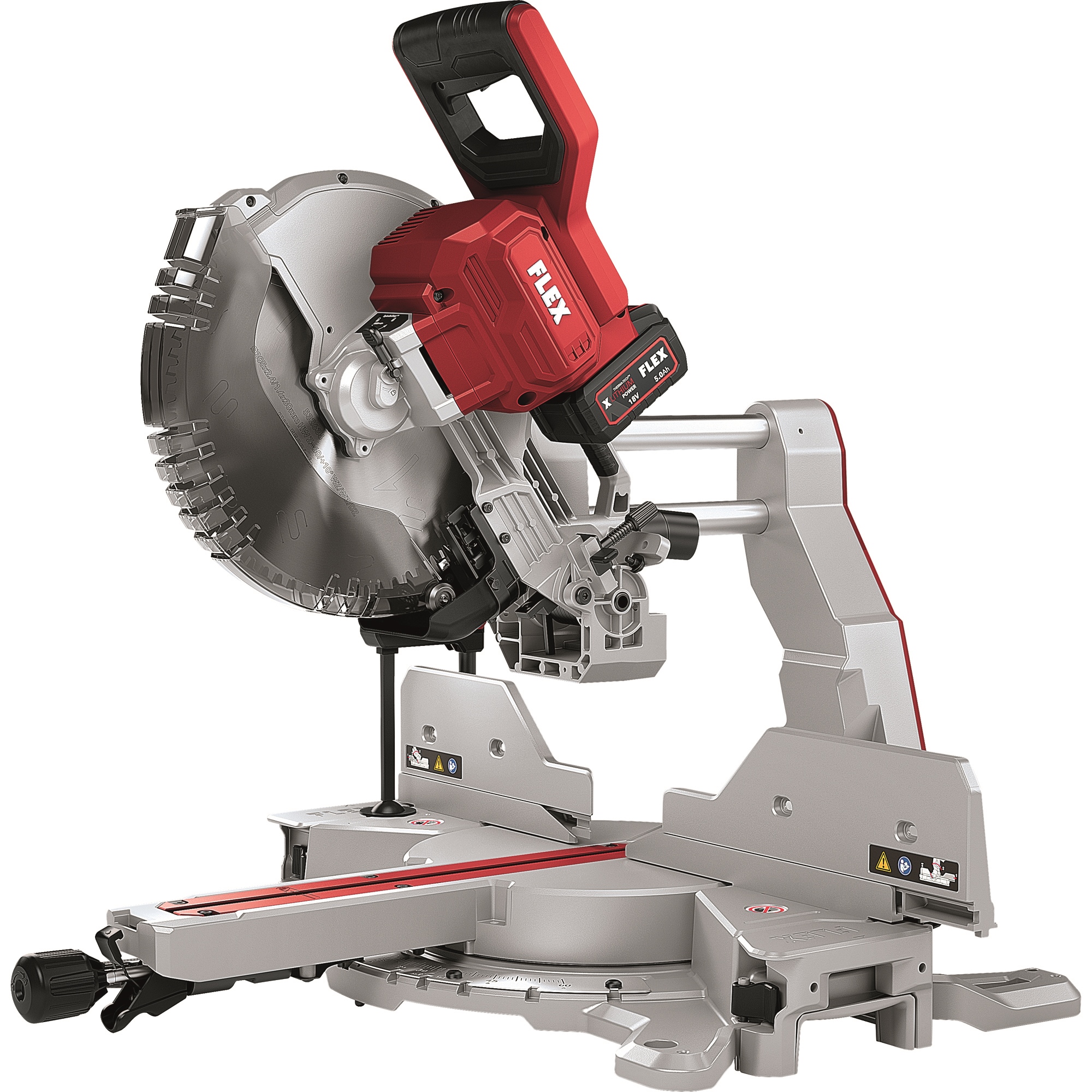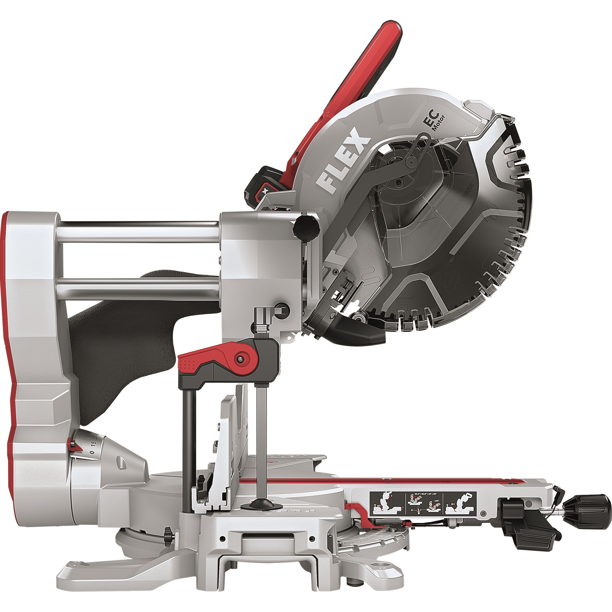Kraftvolle und präzise Akku Kapp-Zugsäge mit großer Schnittkapazität: 101 x 330 mm und 92 x 356 mm. Die beidseitigen Tischverlängerungen unterstützen das Handling längerer Werkstücke