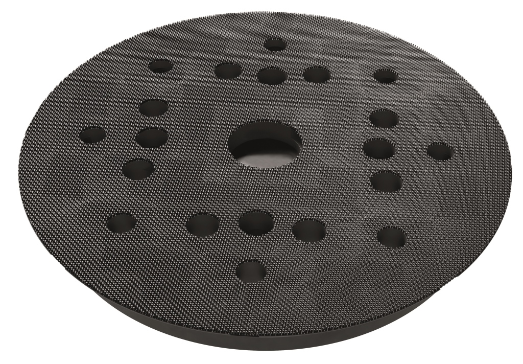 Schleifteller aus hoch strapazierfähigem Spezialmaterial mit Absauglochung für 8 Loch- und Multihole Schleifmittel. Zum Schleifen von Flächen und Konturen.