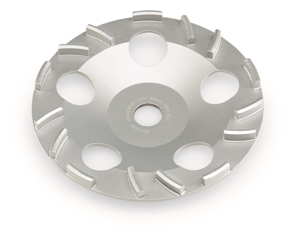 Schleifteller geeignet zum Abschleifen von Betonteilen, Anschleifen von verwittertem Altbeton, hartem Zementputz, zum Entfernen von Schalungsübergängen und Betonläufern, ausgehärteten Epoxidharzbeschichtungen und der Sinterschicht an Betonteilen. Hohe Schleifleistung und Lebensdauer durch neuartige Segmentkonstruktion. Optimale Untergrundvorbereitung für eine weitere Beschichtung.