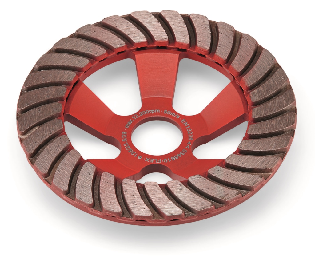 Turbo-Jet Schleifteller mit optimaler Abtragsleistung. Durch die Vielzahl der Diamant-Segmente entsteht ein deutlich ruhigeres Laufverhalten und schöneres Schleifbild. Ideal für den Flächenschliff auf mineralischen Untergründen.