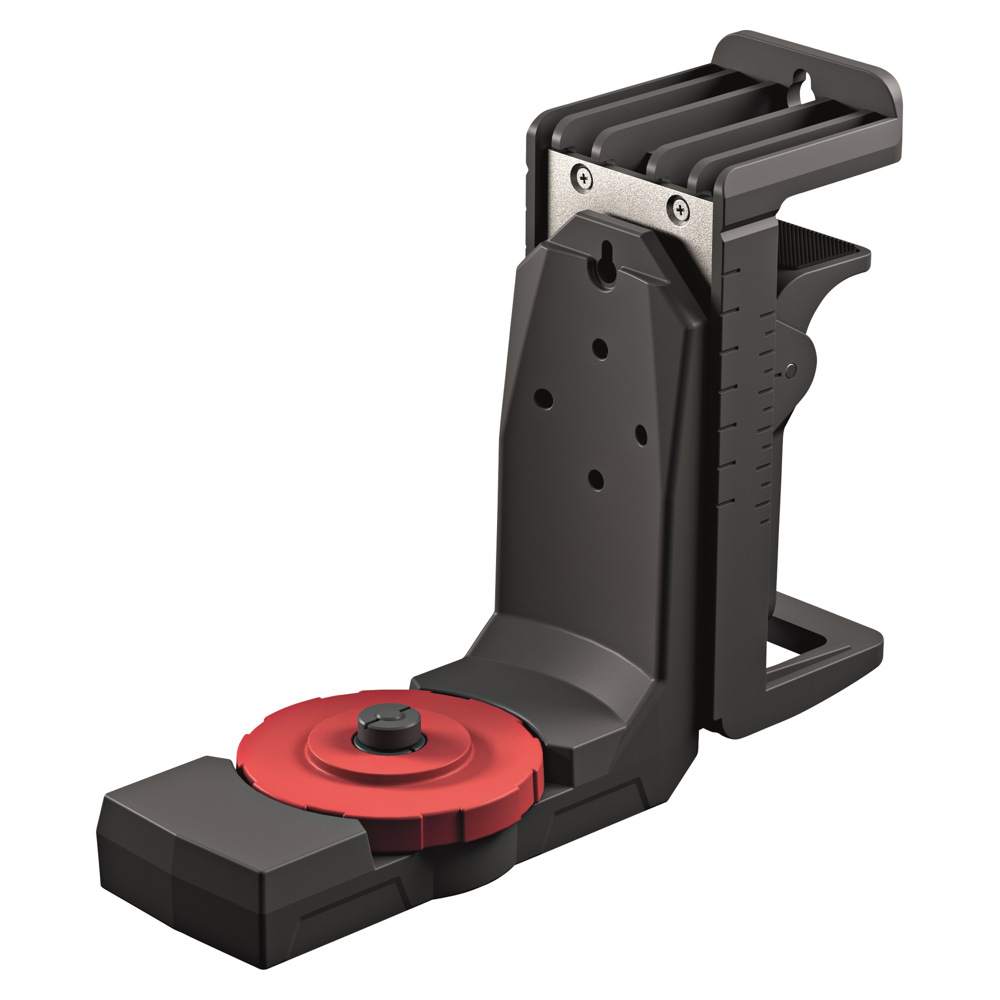 Bestehend aus Wandhalterung und Halterung für Laser. Verfügt über starke Magneten, haften perferkt senkrecht oder waagerecht. Spannbereich Wandhalterung bis 50 mm, lässt sich einfach und flexibel an Balken, Rahmen etc. befestigen. Präzise Positionierung des Lasers durch stufenlose Höhen- und Winkeleinstellung, Laser kann auch mit montierter Universalhalterung auf einem Stativ befestigt werden, dank 1/4" und 5/8" Gewinde. Ausgestattet mit Gummipuffer zum Schutz empfindlicher Oberflächen und für einen sicheren Halt.
