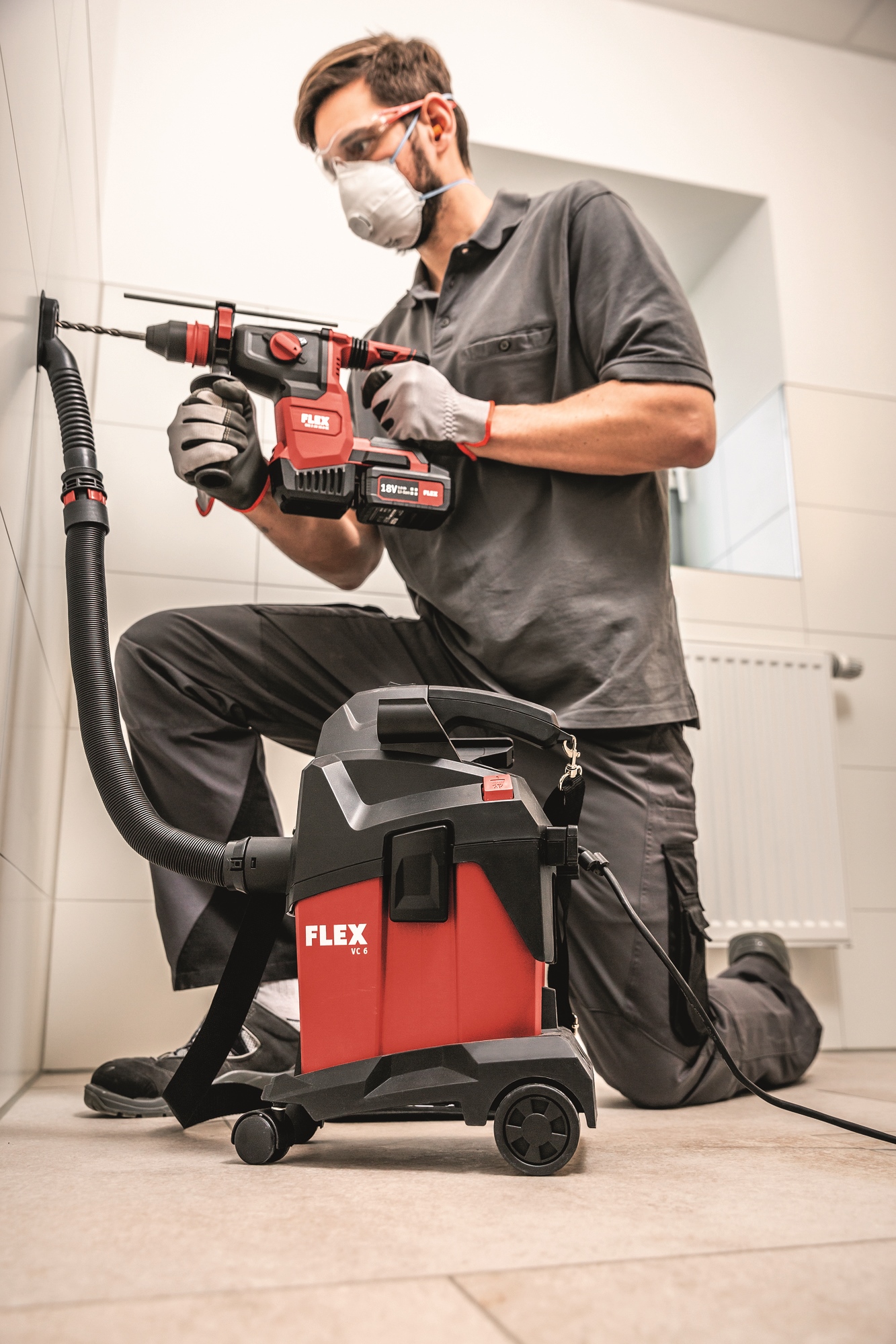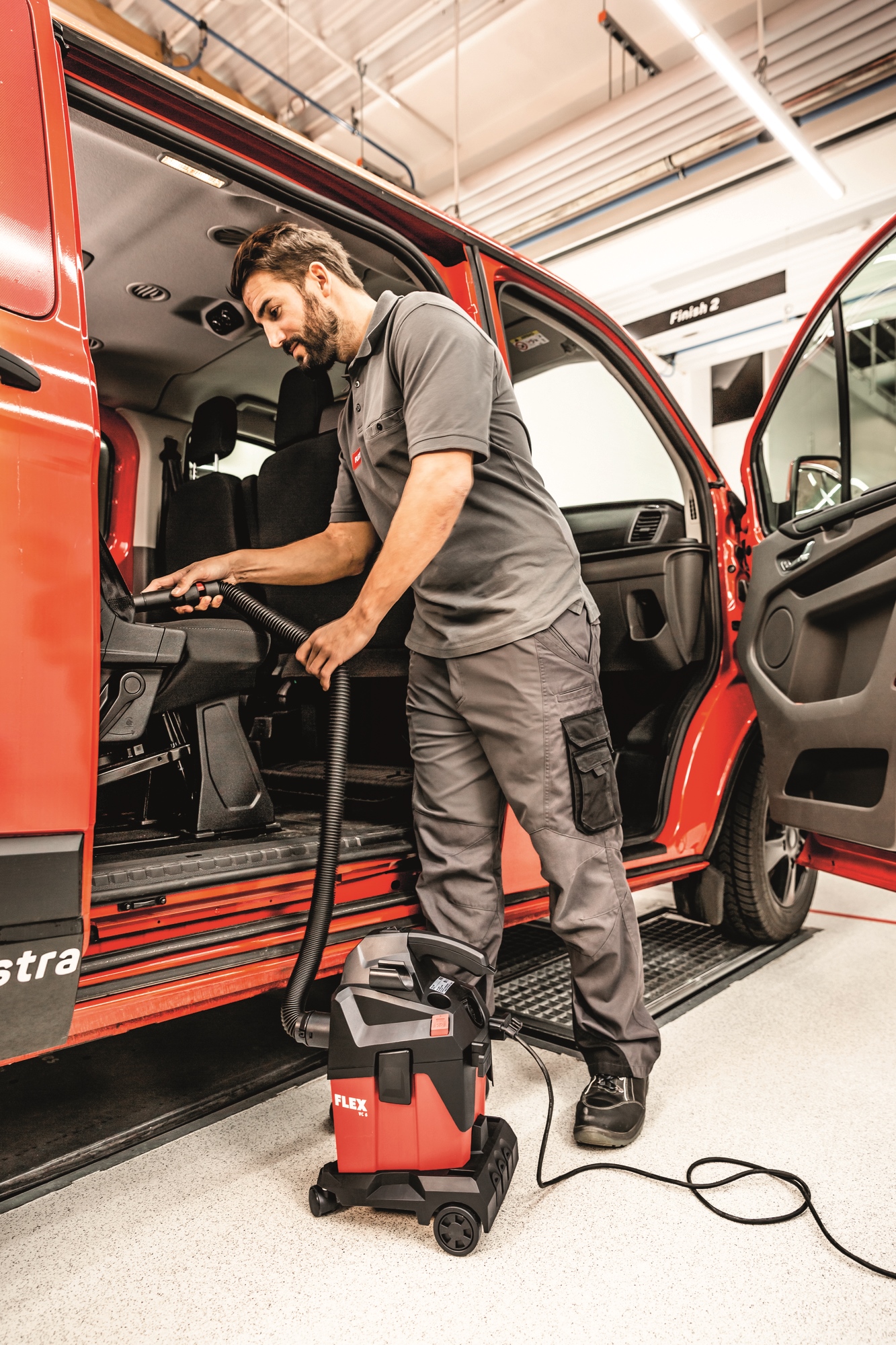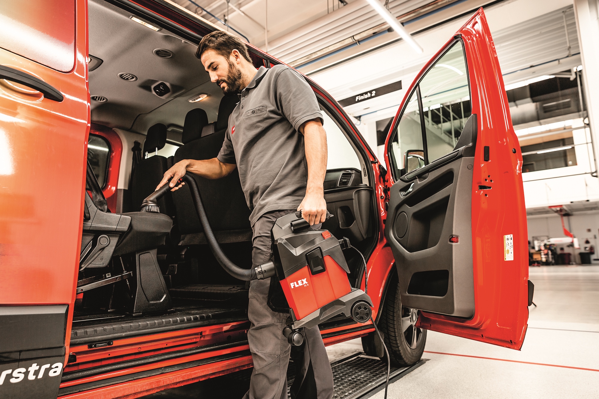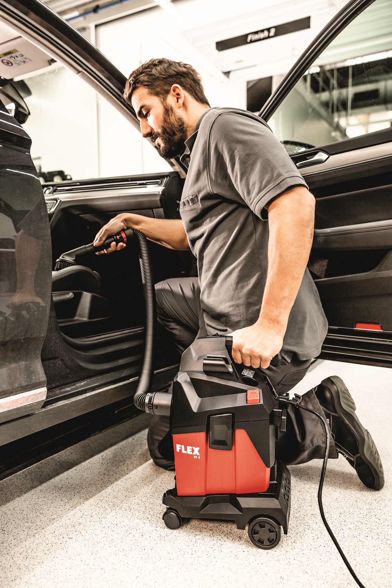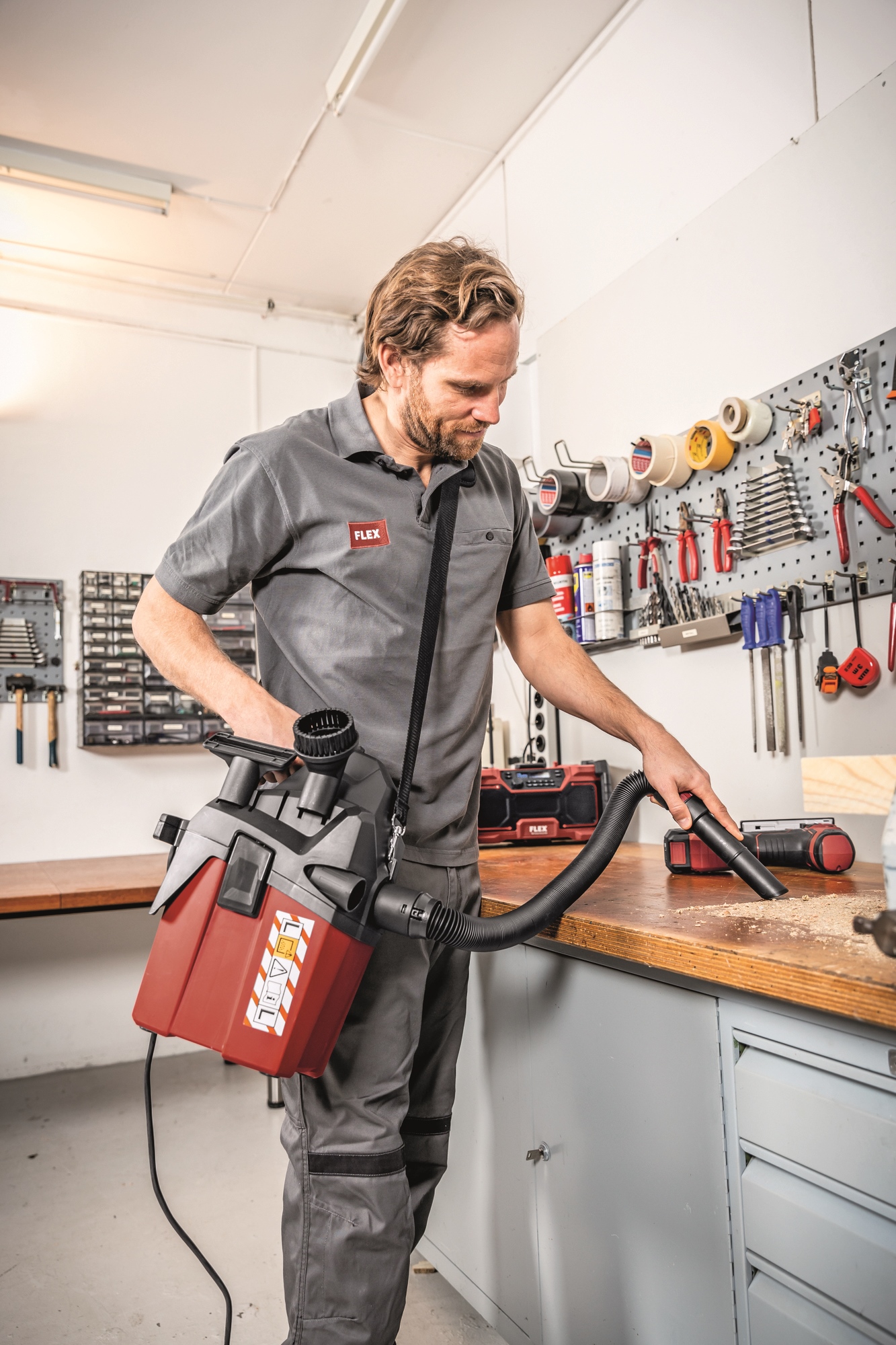 Leistungsstarker Sauger für den professionellen Einsatz bei der Endmontage, KFZ Reinigung etc. Einfacher Anschluss von FLEX Elektrowerkzeugen mit dem FLEX Clip-System für Absaugarbeiten