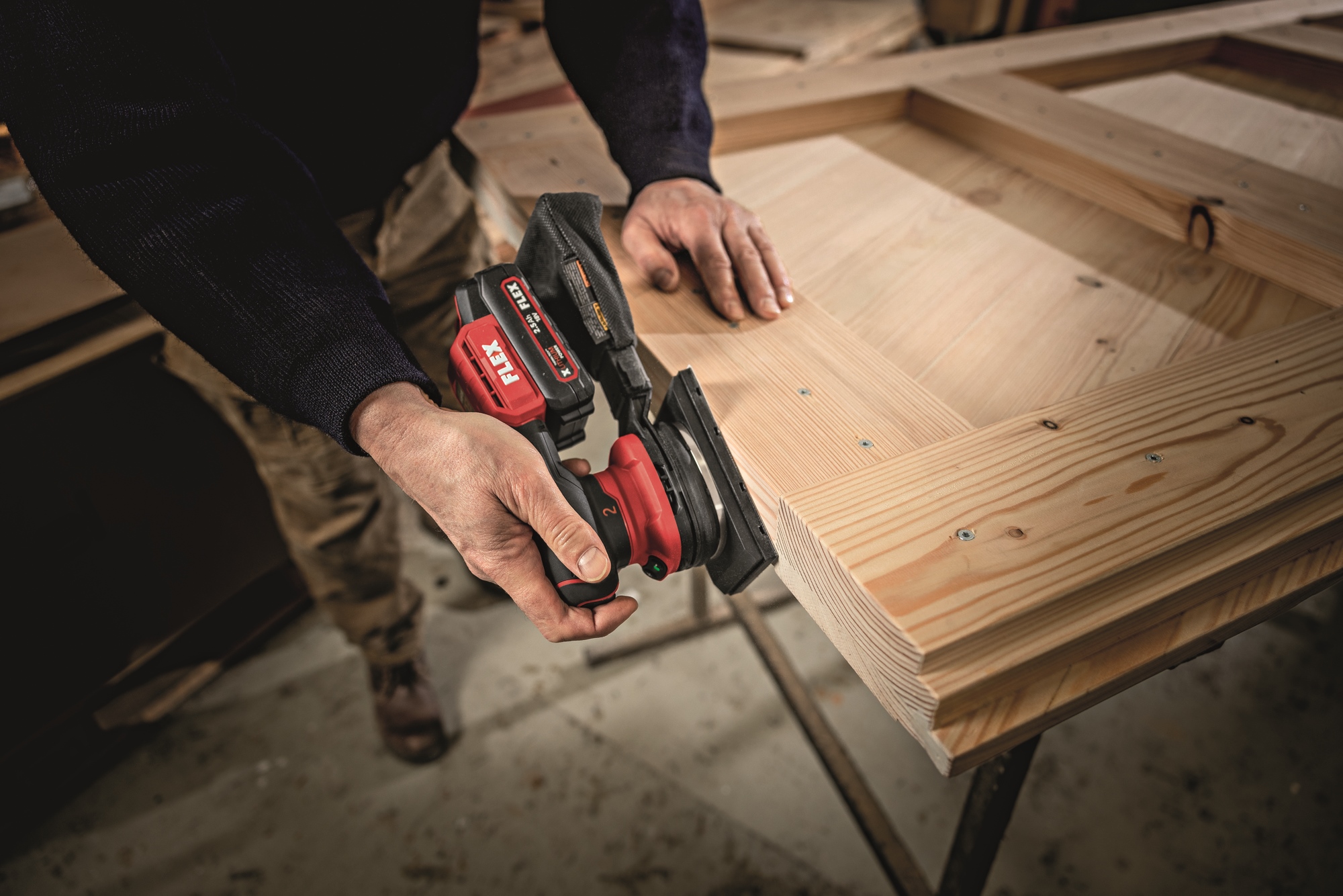 Ponceuse vibrante légère et compacte à une main, particulièrement ergonomique et à faibles vibrations grâce à un équilibrage spécial pour un travail sans fatigue et ménageant les articulations