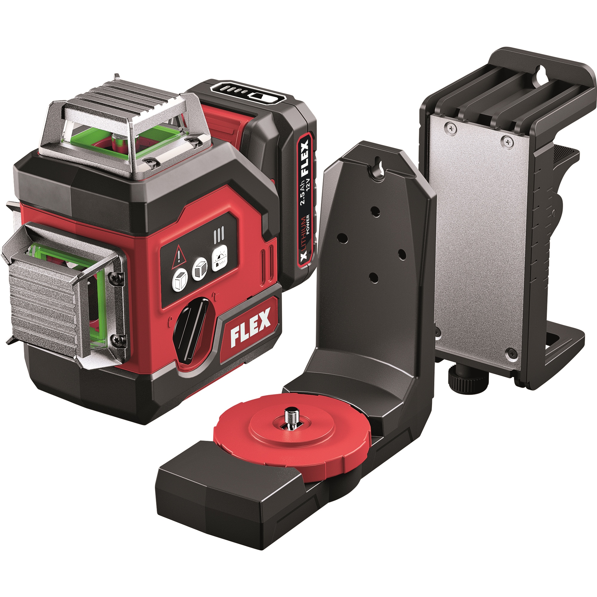 Avec une ligne laser horizontale et deux lignes laser verticales à 360°, commutables individuellement
