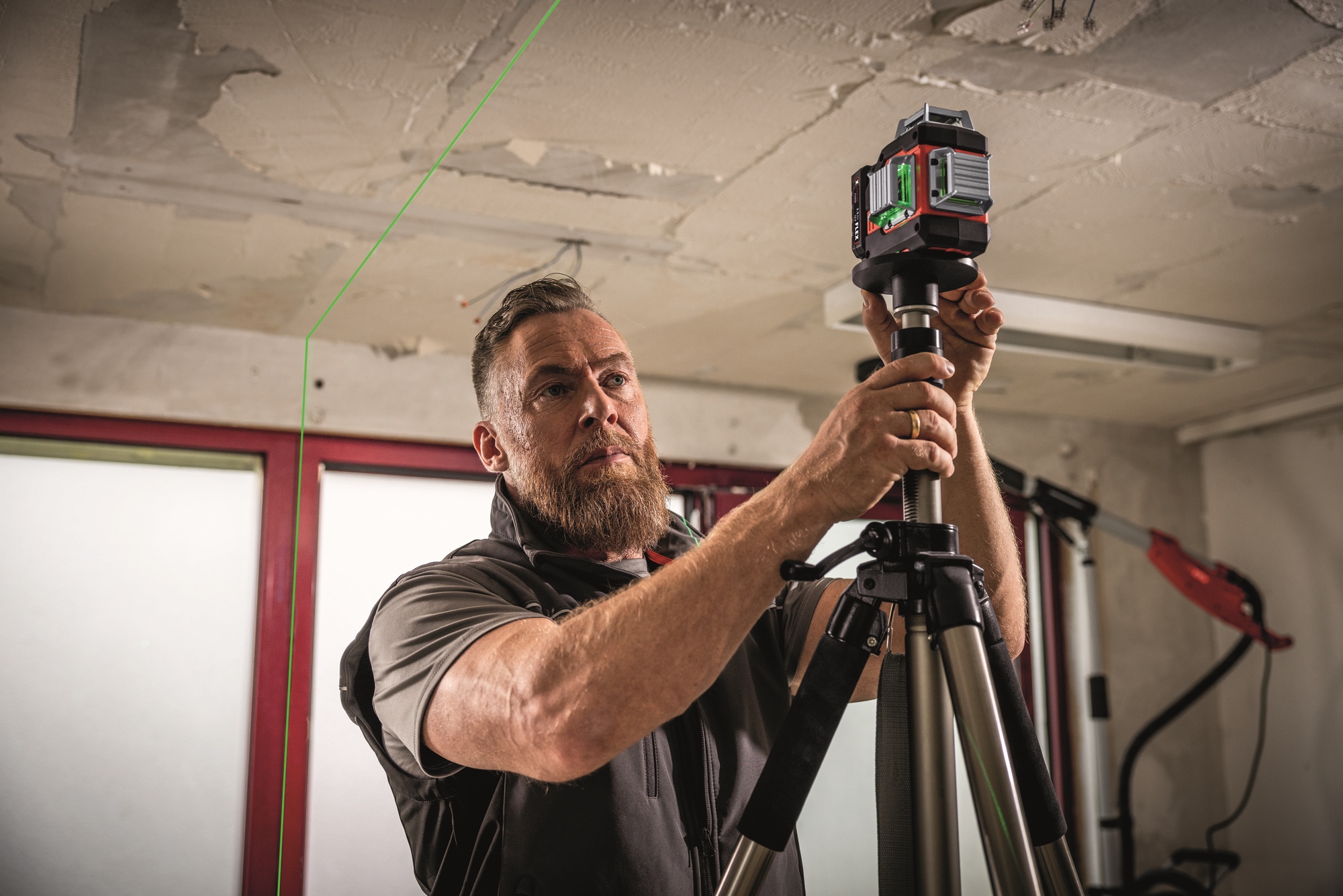 Le nivellement se déroule horizontalement et verticalement, ce qui le rend particulièrement adapté à des utilisations en intérieur, pour aligner portes et fenêtres, éléments de construction ou d'ameublement, la pose de miroirs en carreaux, etc. ainsi qu'à des utilisations les plus diverses sur les chantiers de construction
