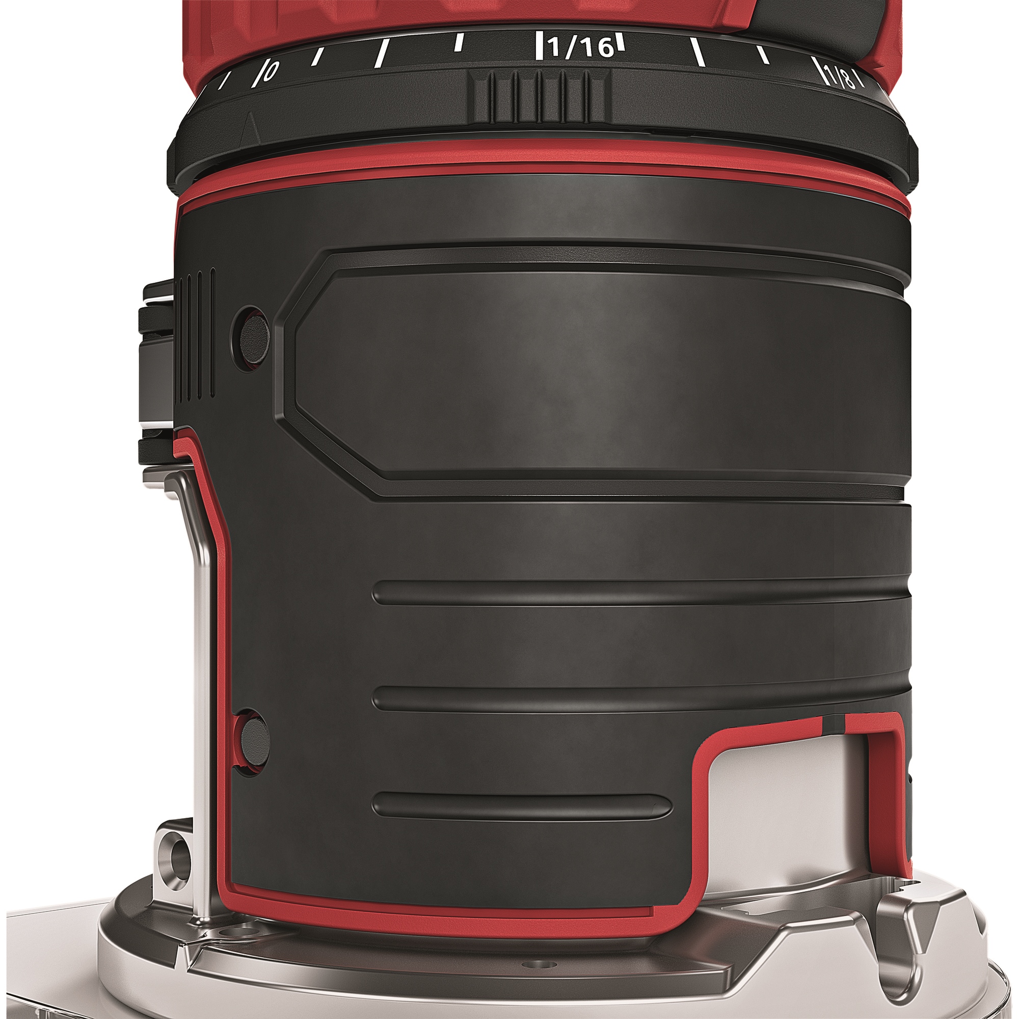 Avec fonction zéro de l'échelle, réglage de la profondeur de fraisage via la butée revolver et réglage fin en continu de la profondeur de fraisage via la bague rotative