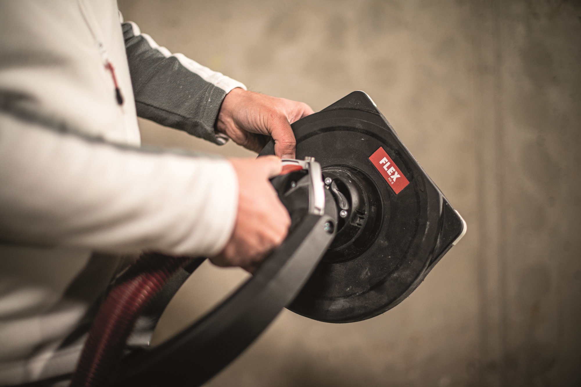 Tête de ponçage reposant sur un cardan assure une flexibilité élevée et une adaptation optimale lors du ponçage de murs et de plafonds.