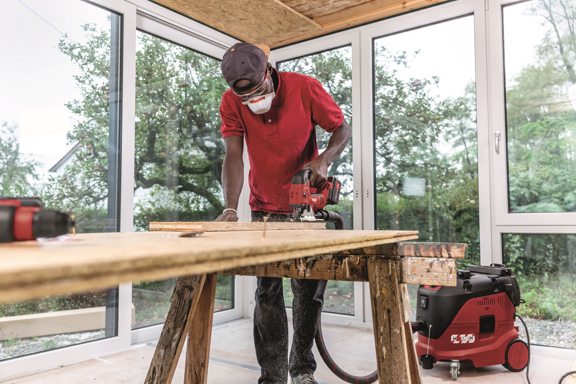 Protection anti-éclats amovible, pour des coupes sans éclats et pour guider la lame de scie.