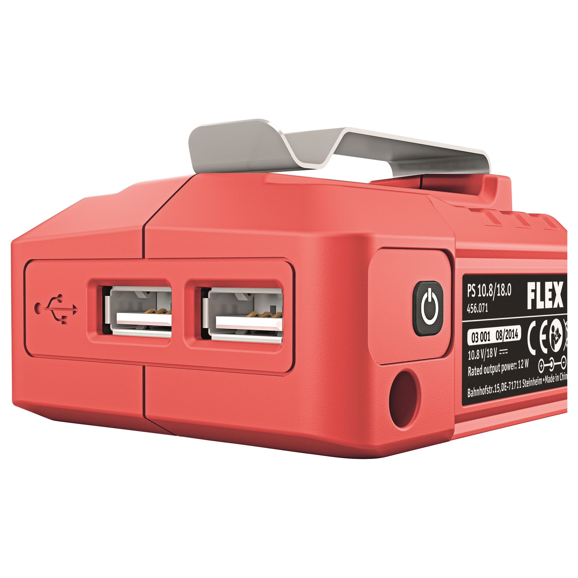 Adaptateur à batterie pour utiliser les accus 18 V ou 12 V comme chargeur USB pour votre smartphone et pour alimenter les vestes avec chauffage. L'adaptateur a 2 connexions USB, mode d'épargner l'energie et un clip de ceinture. Le courant de charge