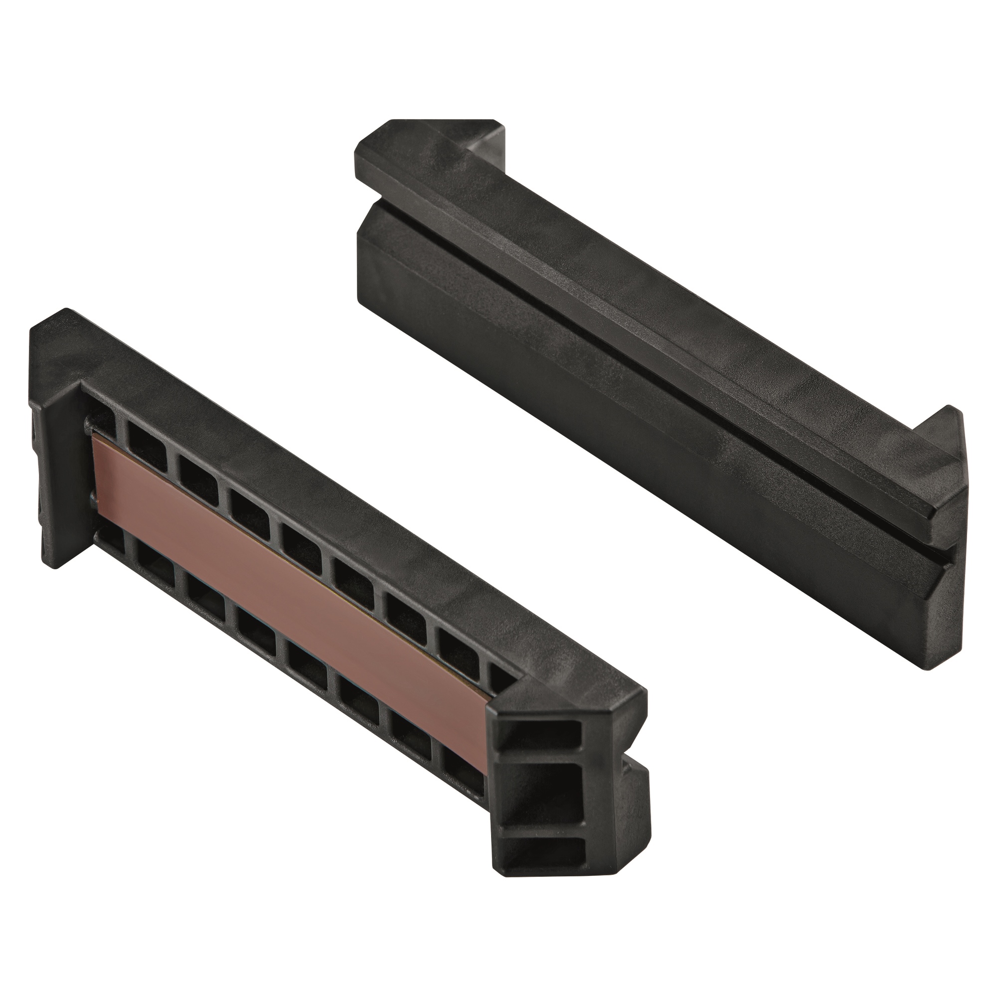 Mâchoires de protection en plastique avec aimant, adaptées aux SBG 4908 et 4910, avec prisme, pour un serrage sûr des matériaux à surfaces fragiles. En utilisant les mâchoires de protection, sur la SBG 4910, la distance de coupe est réduite à 15 mm.