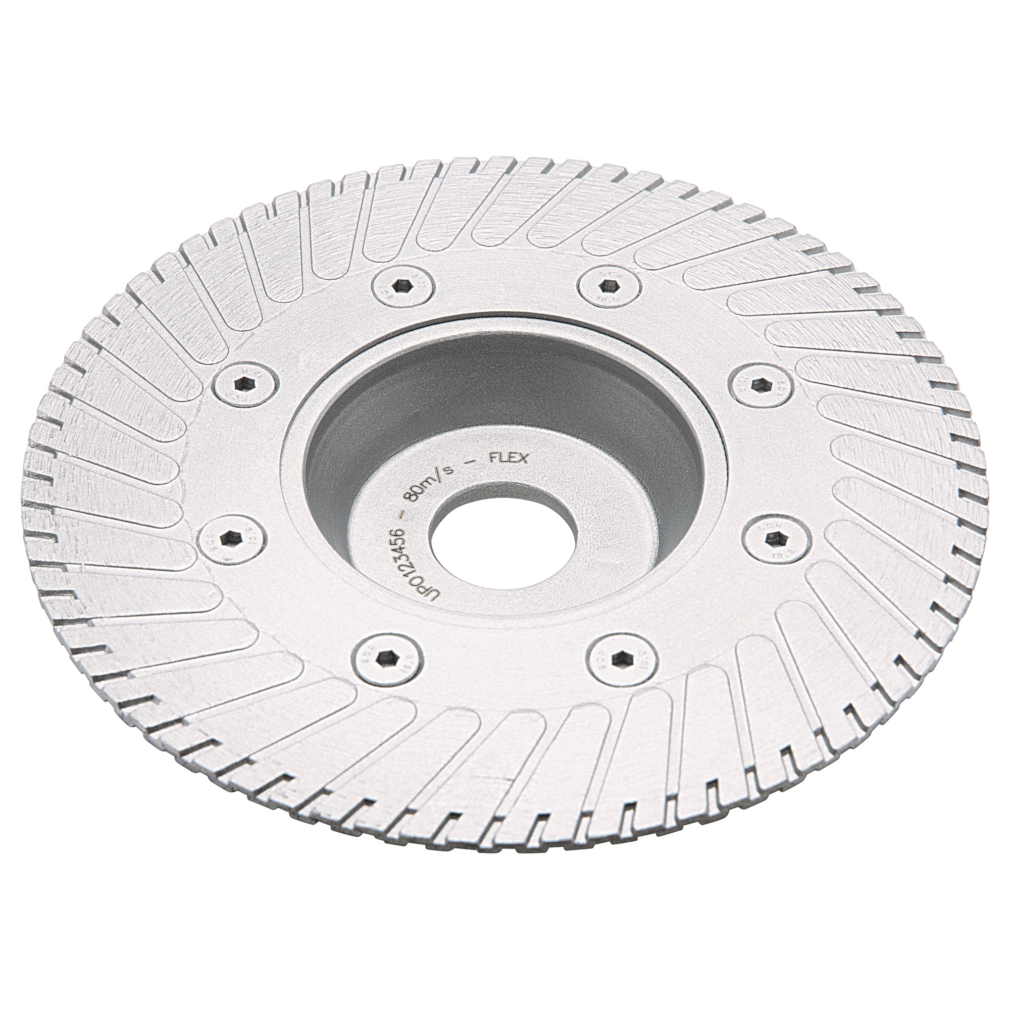 Roue de ponçage spéciale pour le traitement des revêtements du béton et l’enlèvement de graffitis, ainsi que pour l’enlèvement de légères irrégularités et les transitions de pièces en béton, les salissures sur le béton et le plâtre dur. Avec bride moulée FLEX.