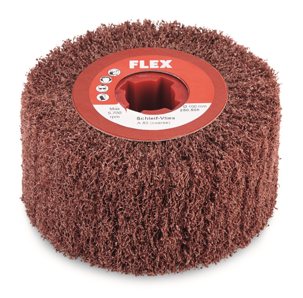 Rouleau en non-tissé élastique en tissu de nylon imprégné de grains abrasifs avec rainure de clavette. Permet d'obtenir des surfaces du plus bel effet sur l'acier inoxydable, le cuivre, l'aluminium, le laiton, etc. Convient également pour le nettoyage des couches oxydées et le lissage des matières plastiques et du bois.
