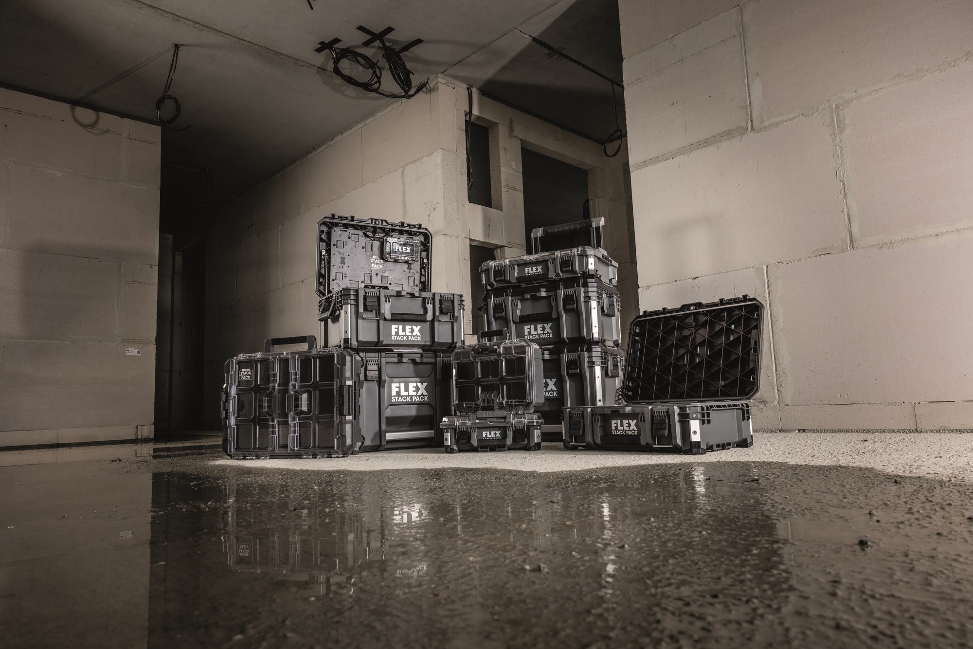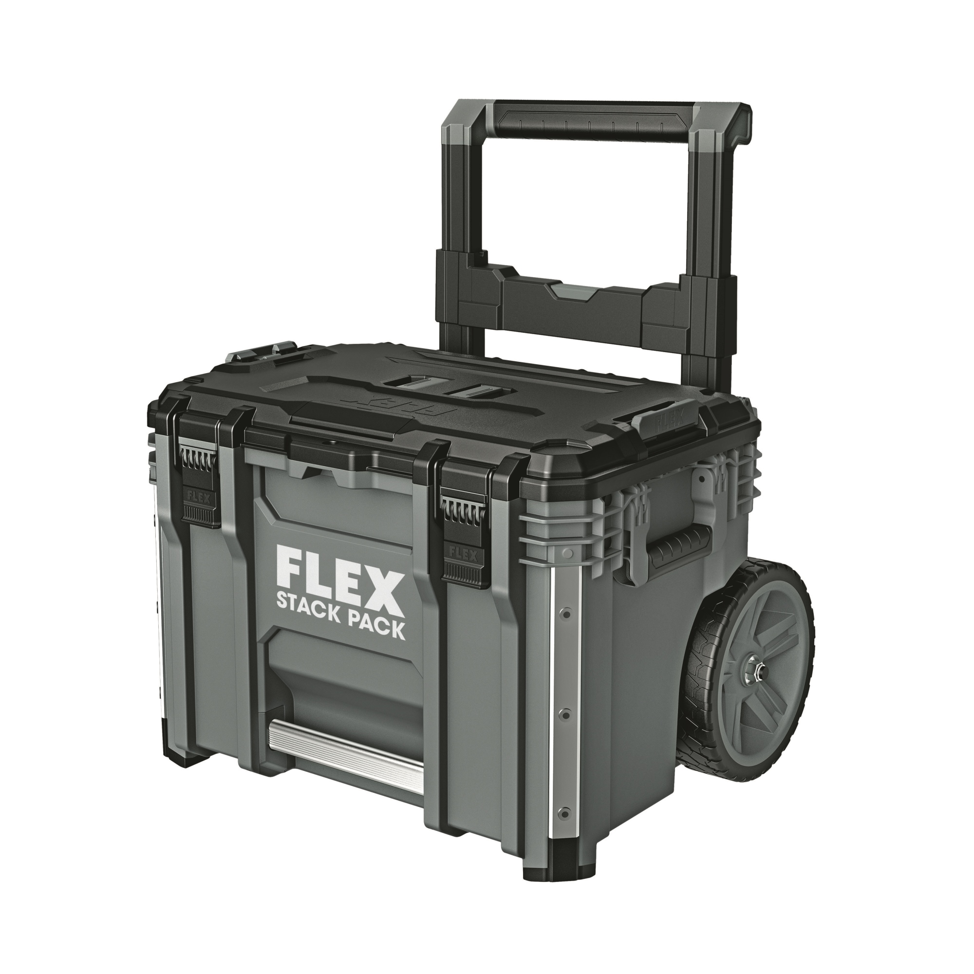 Le système de rangement et de transport robuste STACK PACK permet de transporter facilement les outils et les accessoires sur le chantier. Les boîtes en plastique résistant aux chocs avec des coins renforcés en aluminium protègent les outils et les accessoires des conditions de chantier les plus difficiles. Les boîtes sont équipées d’une fermeture à verrou métallique durable et des poignées supplémentaires assurent une manipulation flexible et confortable. Des fermetures rapides qui s’emboîtent les unes dans les autres offrent une connexion rapide, flexible et sans effort des différentes boîtes, ce qui permet de composer le système de rangement en fonction des besoins individuels. Élément de base idéal : valise à roulettes avec poignée télescopique amovible, roues robustes de 23 cm de diamètre et grande boîte de transport. Cette boîte est équipée de vérins à gaz qui permettent de la maintenir ouverte.
