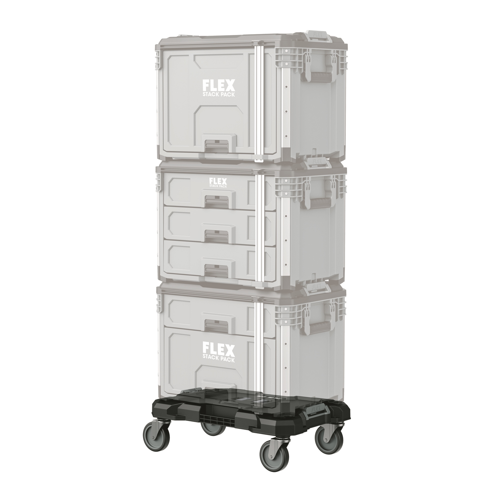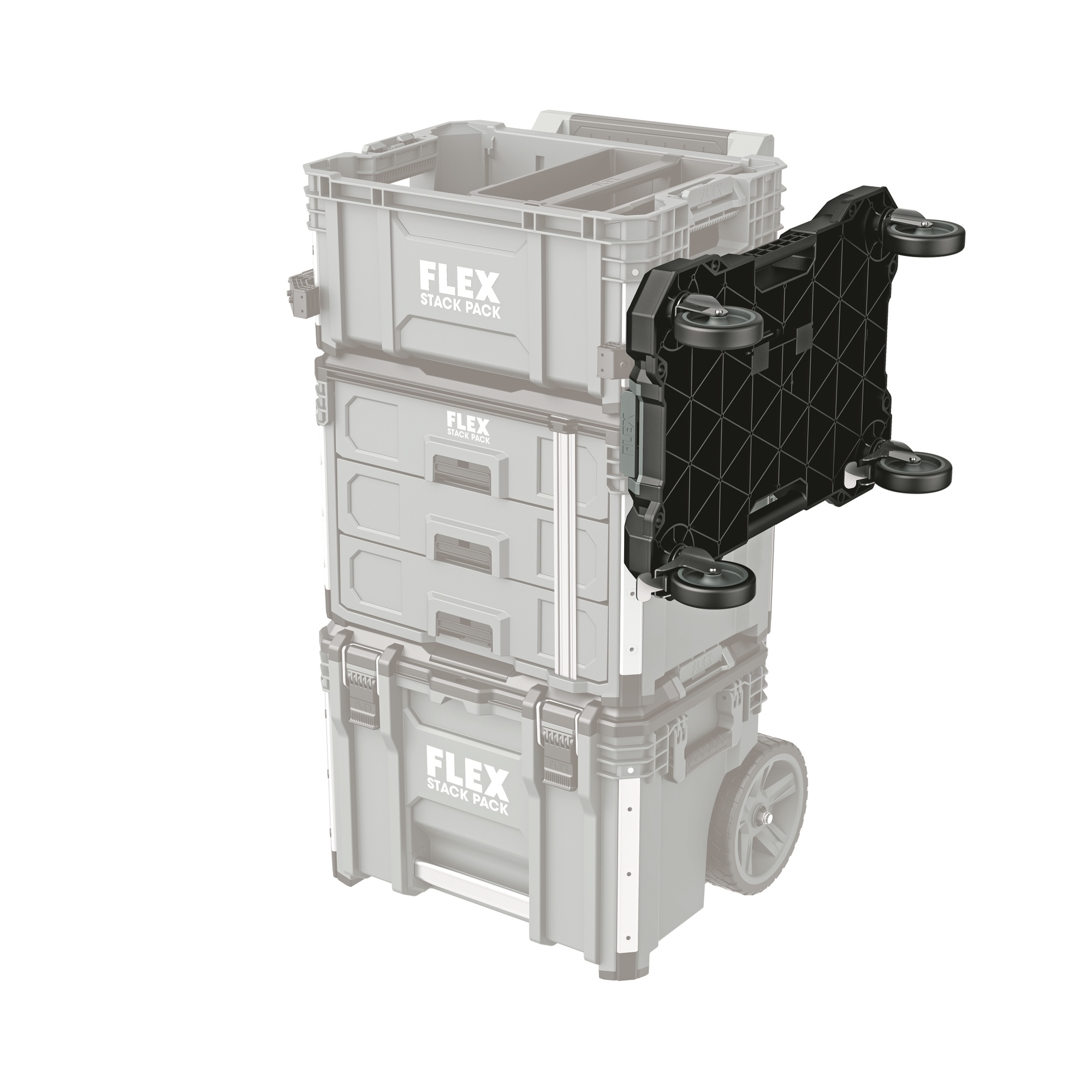 Le système de rangement et de transport robuste STACK PACK permet de transporter facilement les outils et les accessoires sur le chantier. Des fermetures rapides emboîtables offrent une connexion rapide, flexible et sans effort des différentes boîtes, ce qui permet de composer le système de rangement en fonction des besoins individuels. Des points de fixation sécurisent le chargement pour le transport sur le chariot. Le chariot est équipé de 4 roulettes pivotantes robustes, dont deux blocables. Charge supportable jusqu’à 115 kg.