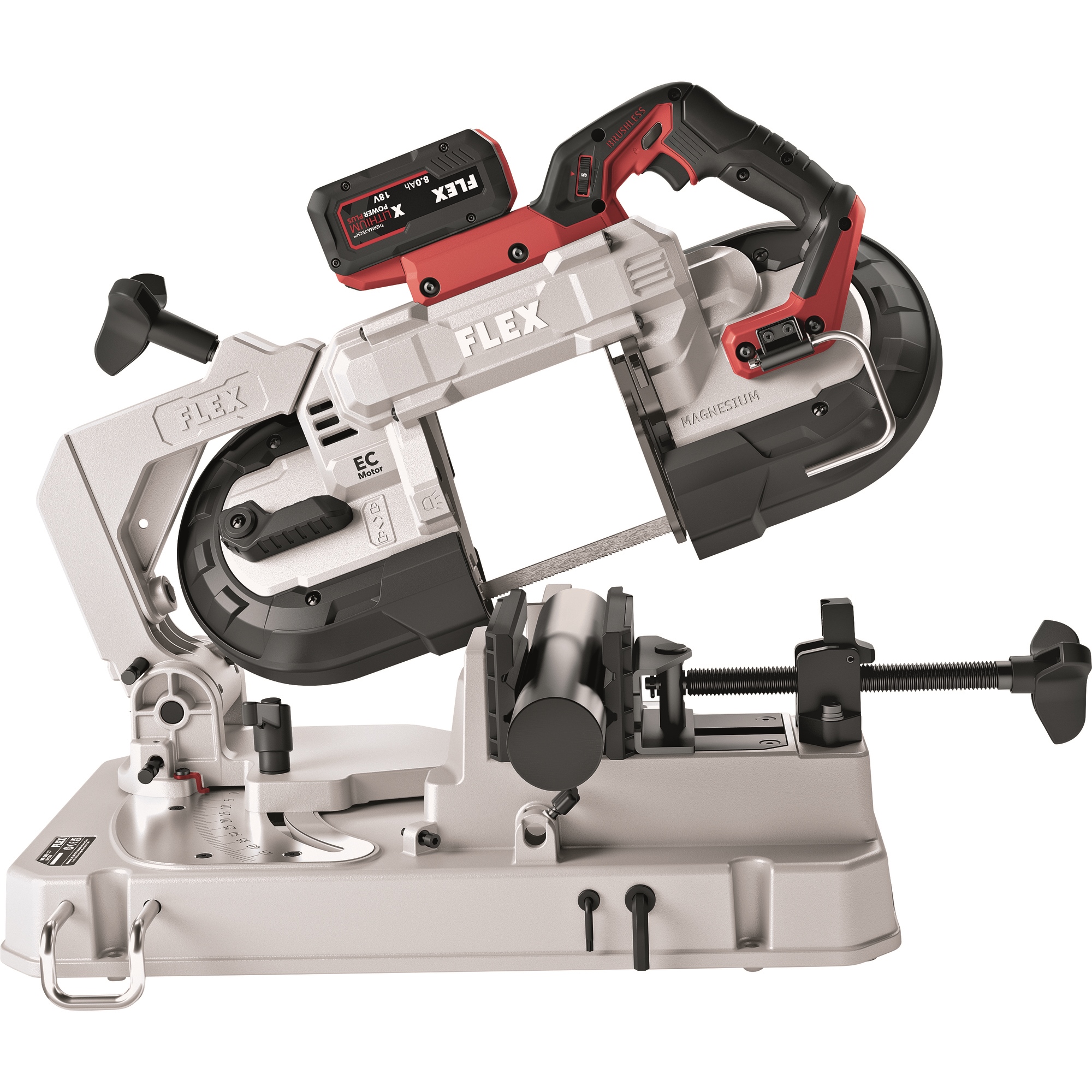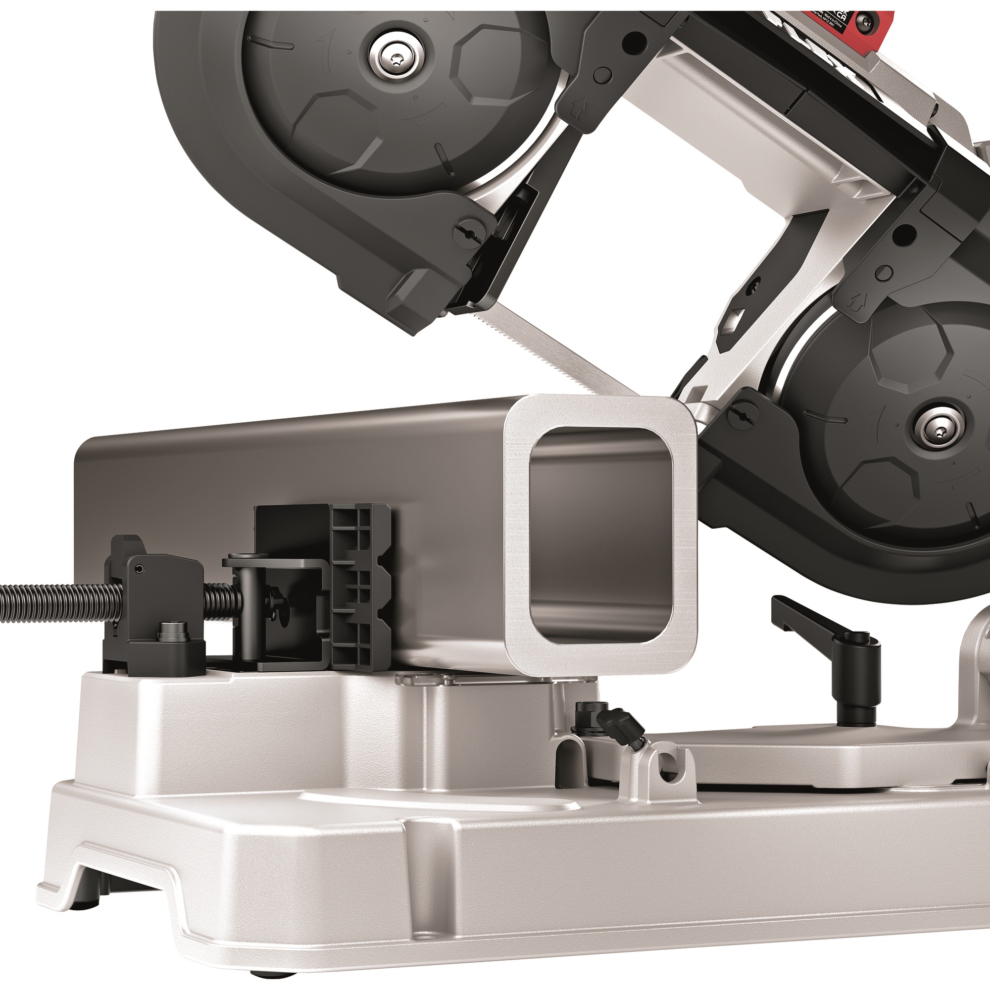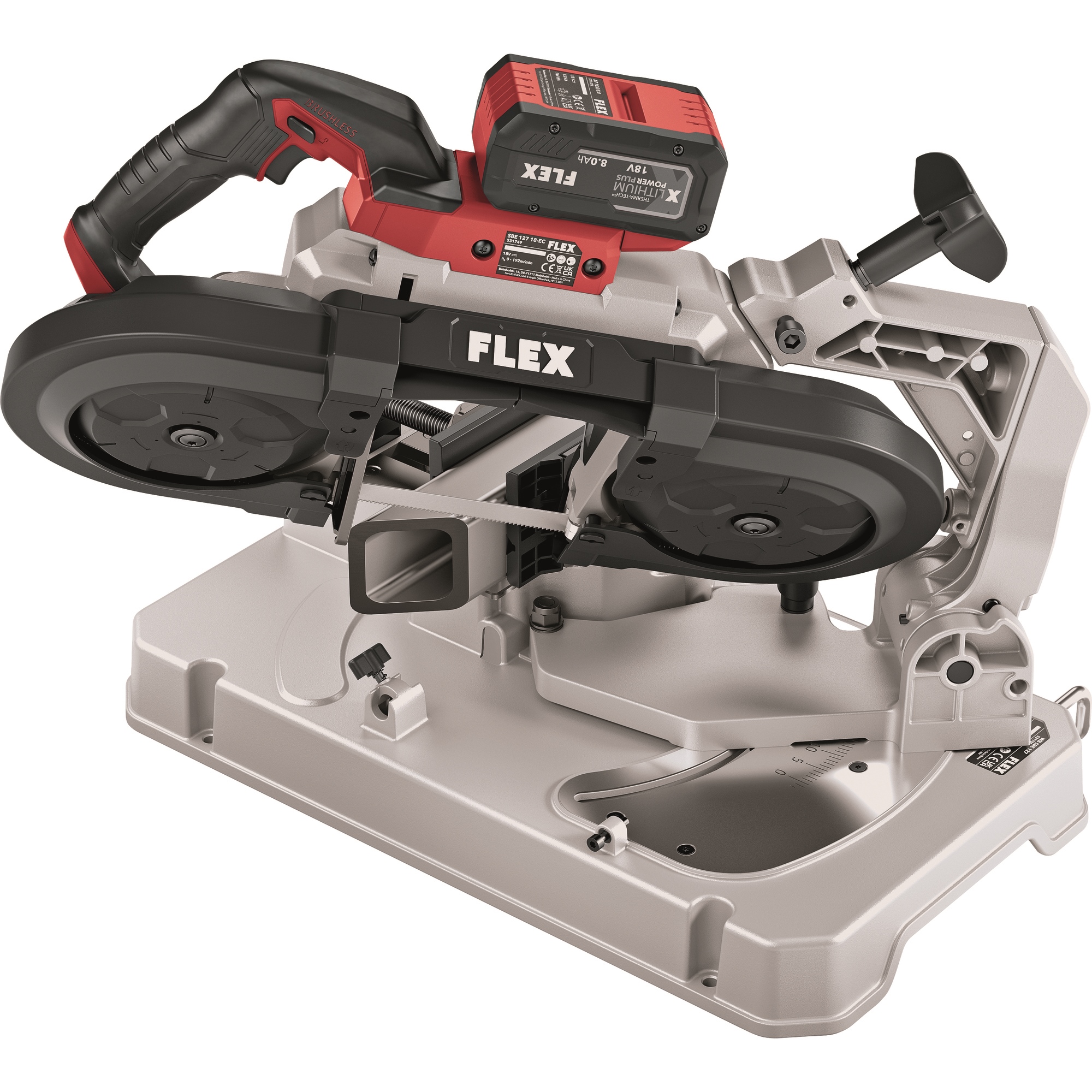 Pour utiliser la SBE 127 18.0-EC comme scie à ruban semi-stationnaire. Montage simple avec un grand bouton rotatif et un levier de blocage pour une fixation rapide. Le bras est soutenu par un ressort et supporte le poids de la scie à ruban. Échelle graduée bien lisible de 0 à 45°. Comprend un étau stable avec des mâchoires d’insertion pour les tubes et autres profilés à surfaces fragiles. Avec butée de longueur flexible des deux côtés, jusqu’à 310 mm à droite et 380 mm à gauche. Ainsi, le travail avec la scie à ruban sur batterie et la table est encore plus précis et plus facile. Si nécessaire, la table peut être montée sur le socle WB 110-260.