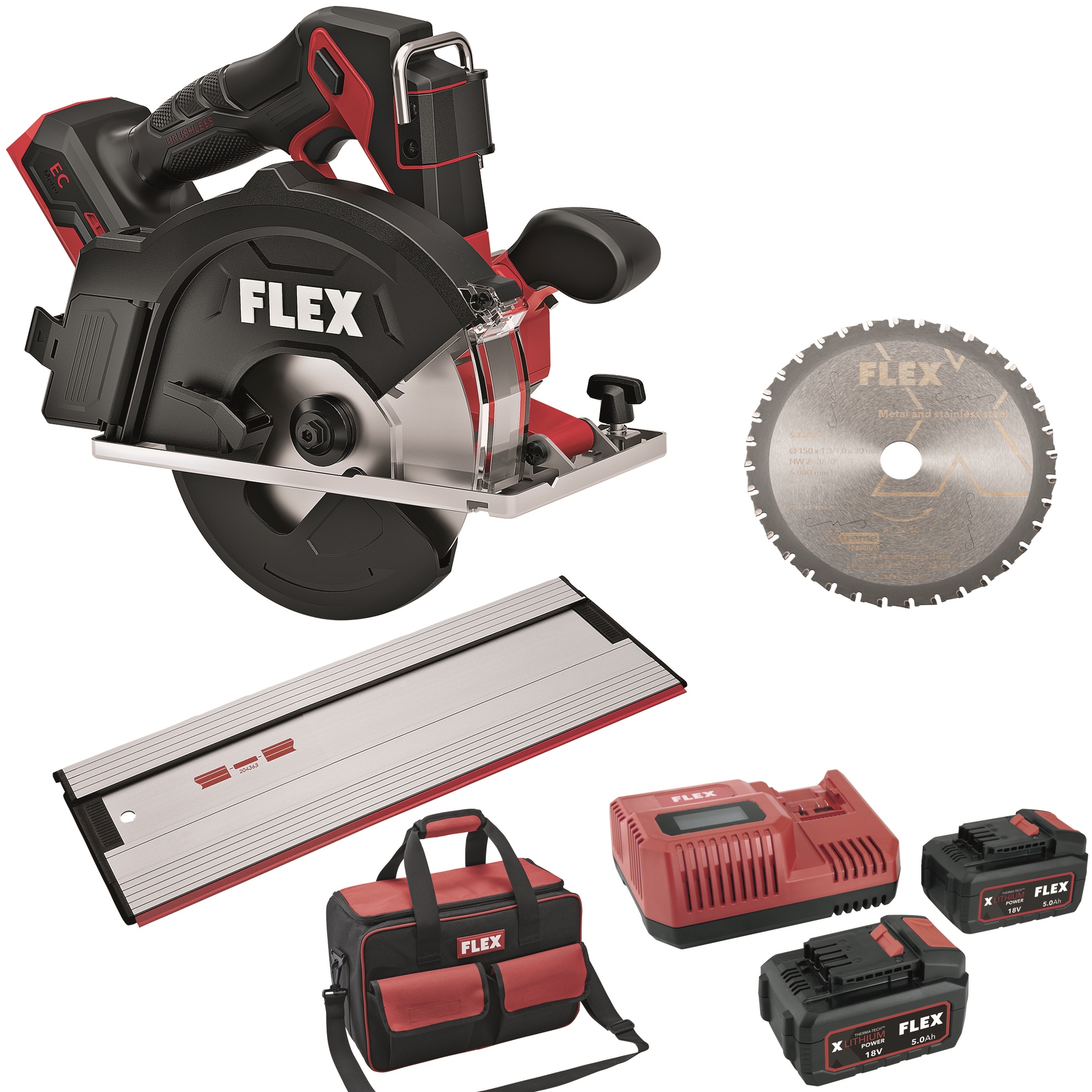 Il kit FLEX CSM 57 18-EC + P-Set 55 R + GRS 80 offre tutto ciò di cui metallurgisti, montatori e artigiani professionisti hanno bisogno per eseguire tagli nel metallo potenti, precisi e netti: