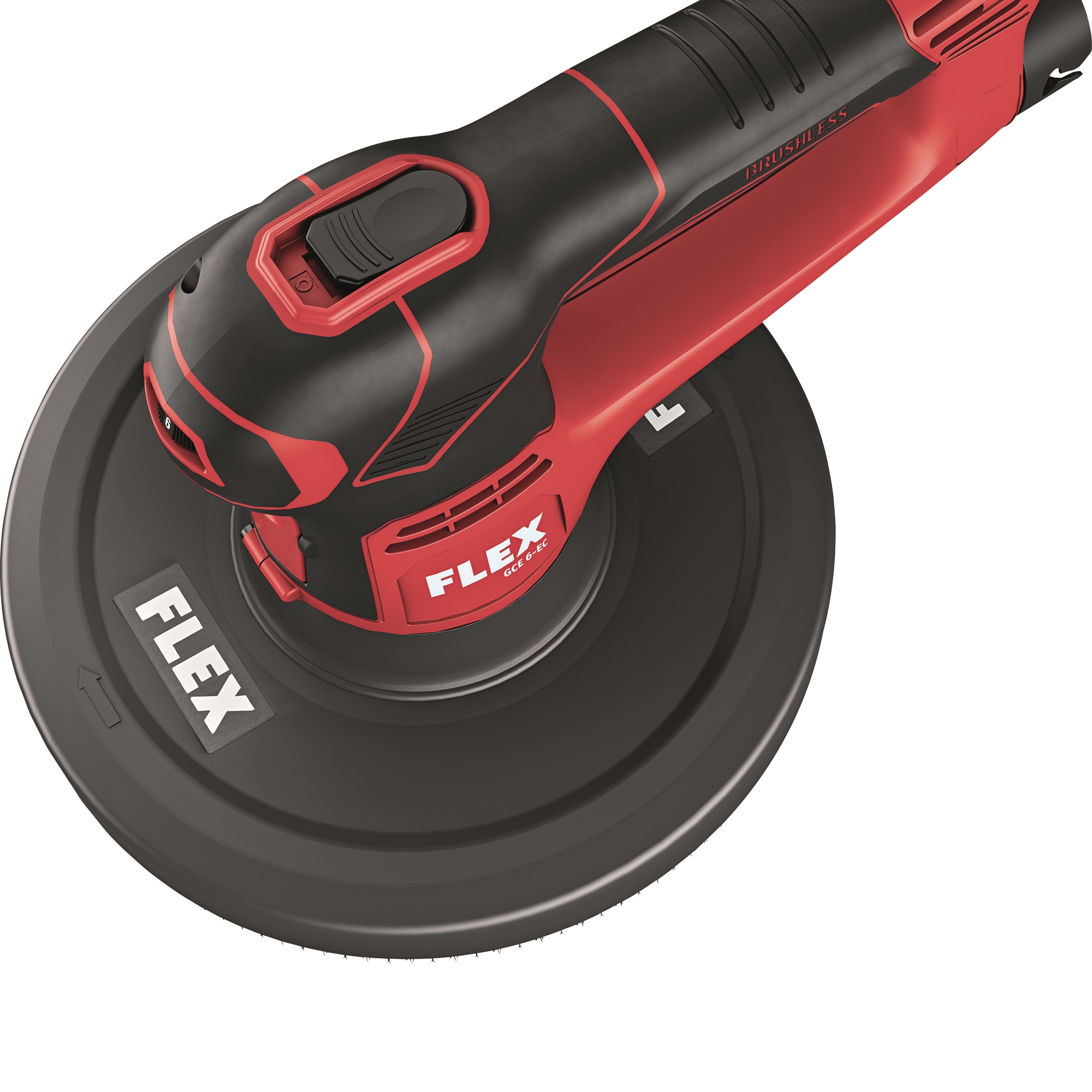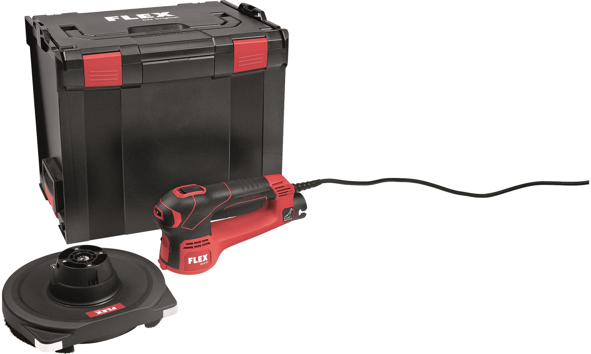 Testa di levigatura a segmenti con segmento orientabile. Ciò consente la lavorazione dei punti di giunzione parete/parete e parete/soffitto. Grazie ai movimenti dell’utensile, la rotazione avviene senza interruzioni di attività.