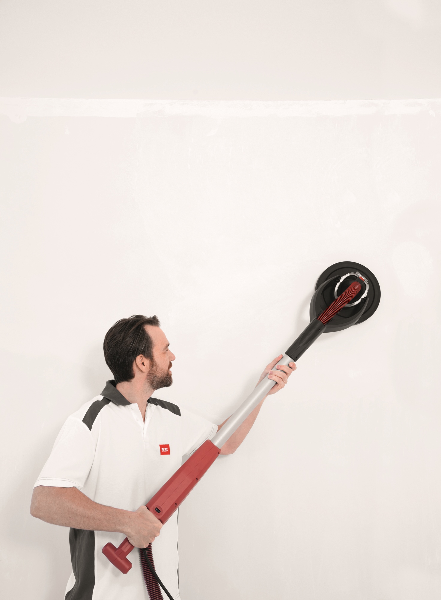 La testa di levigatura con sospensione cardanica offre una grande flessibilità e un adattamento ottimale per la levigatura di pareti e soffitti.