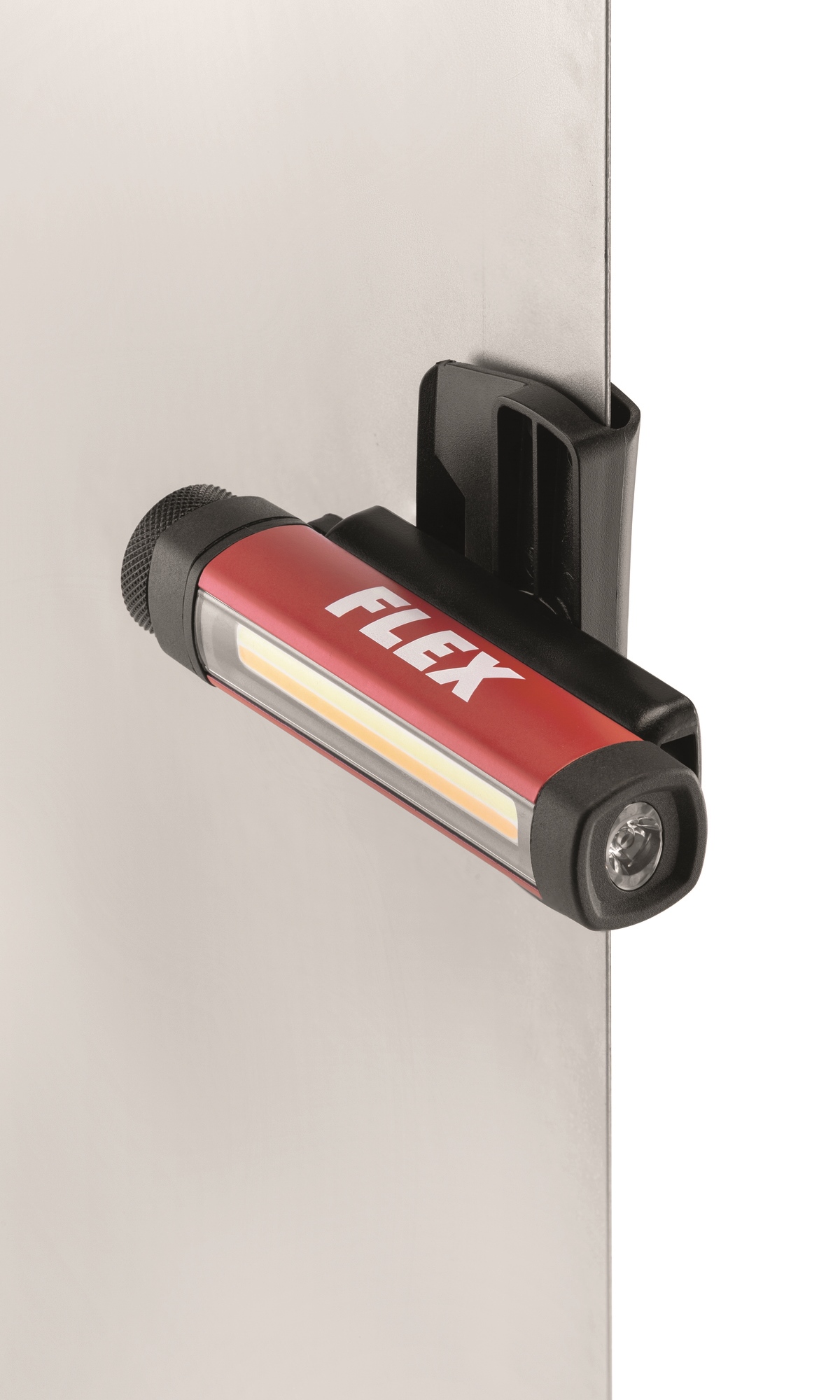 Lampada con opzioni di illuminazione multifunzionali, utilizzabile con la fascia frontale o come faretto applicabile alla visiera con apposita clip, che si impiega anche come torcia o swirl finder per verificare le condizioni delle superfici