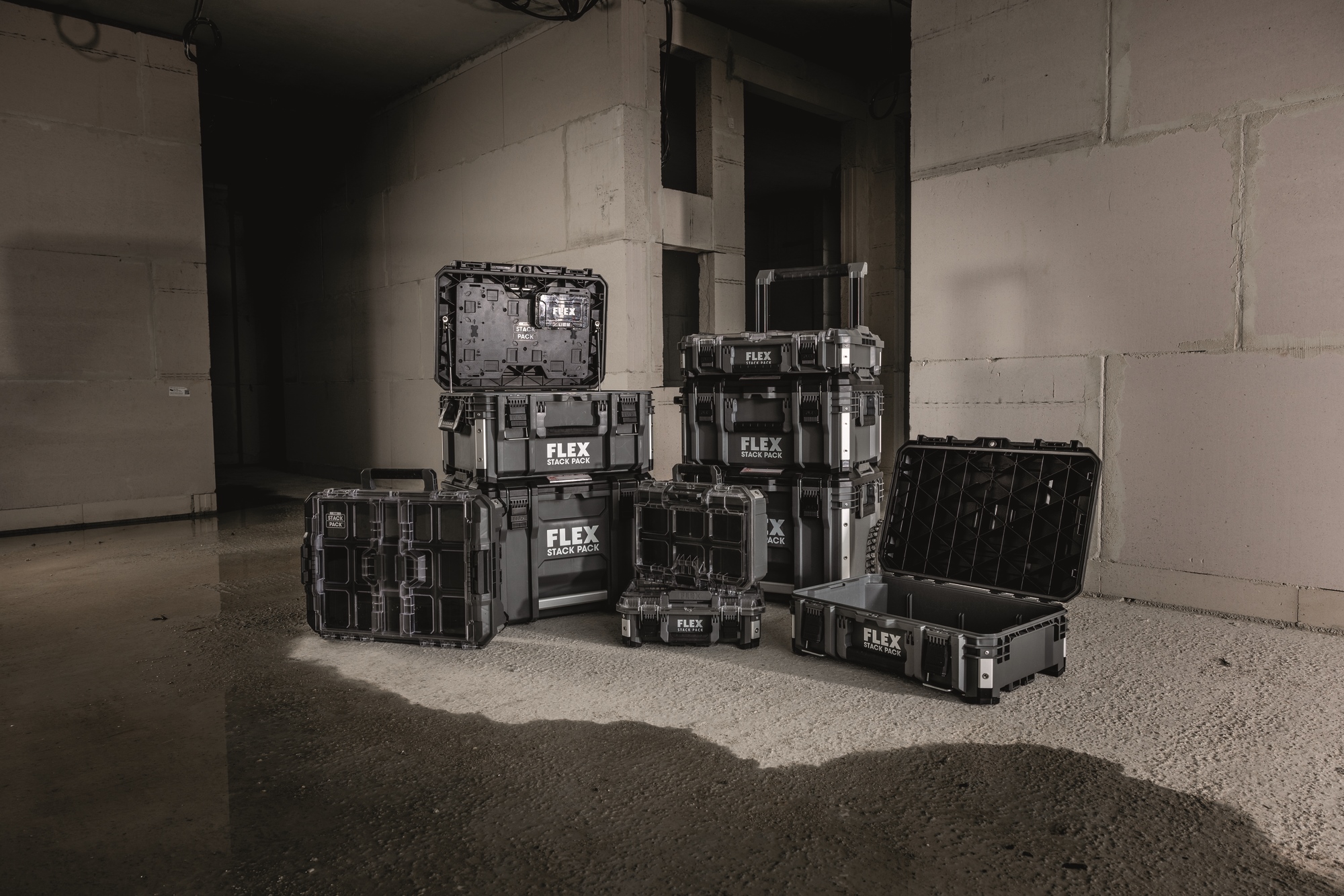 Grazie al robusto sistema di stoccaggio e trasporto STACK PACK è senza problemi possibile portare con sé in cantiere attrezzi e accessori. I box in materiale plastico resistente agli urti con angoli rinforzati in alluminio proteggono attrezzi ed accessori dalle rigide condizioni ambientali presenti in cantiere. I box sono dotati di fibbia di chiusura in metallo robusta e longeva, delle impugnature addizionali favoriscono una manipolazione comoda e flessibile. Chiusure rapide ad incastro provvedono al facile innesto dei box fra loro, per trasformarli in un sistema di stoccaggio personalizzabile in base alle proprie esigenze. Dentro al Big organizer con coperchio trasparente è possibile conservare e tenere in ordine minuteria come bit, viti e altro. Con 8 vani porta accessori e separatori.